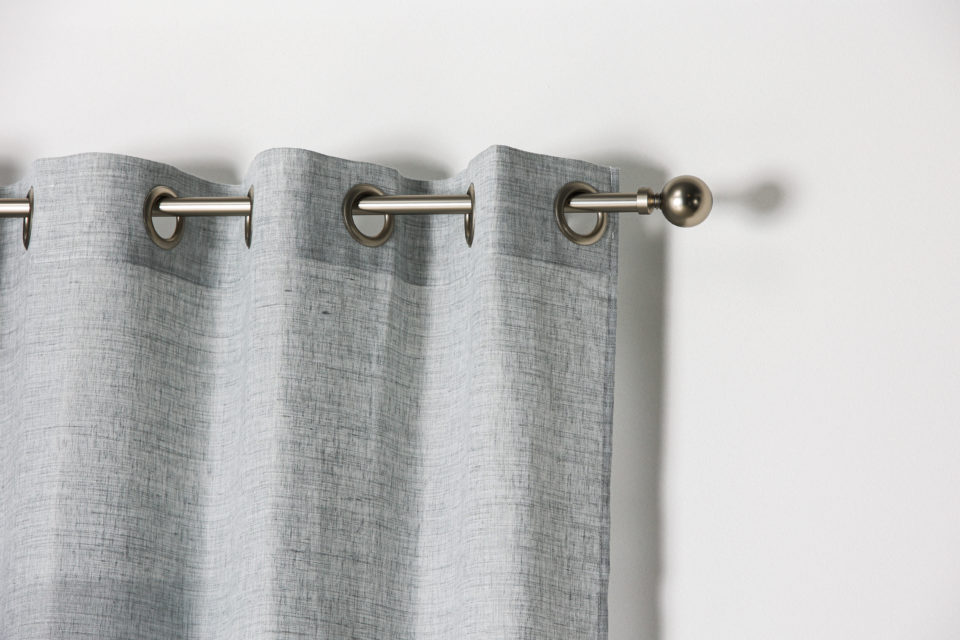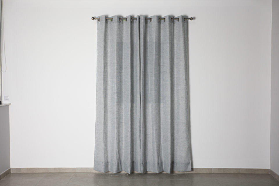 Cortina Fórum Gris – Visillo con ollaos – Composición: 70% poliéster 30% lino – Certificado Oeko-Tex®.