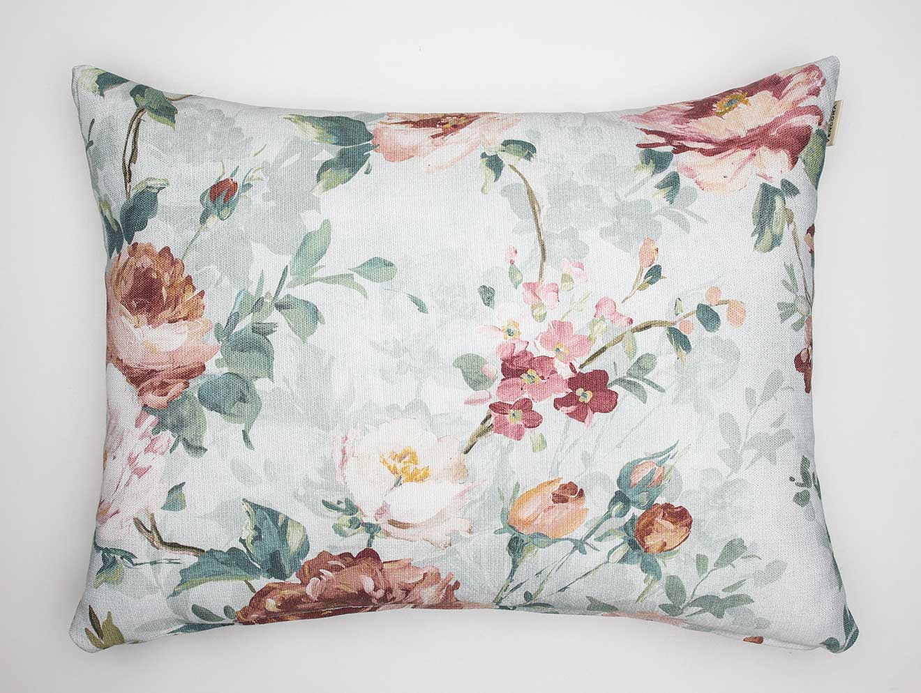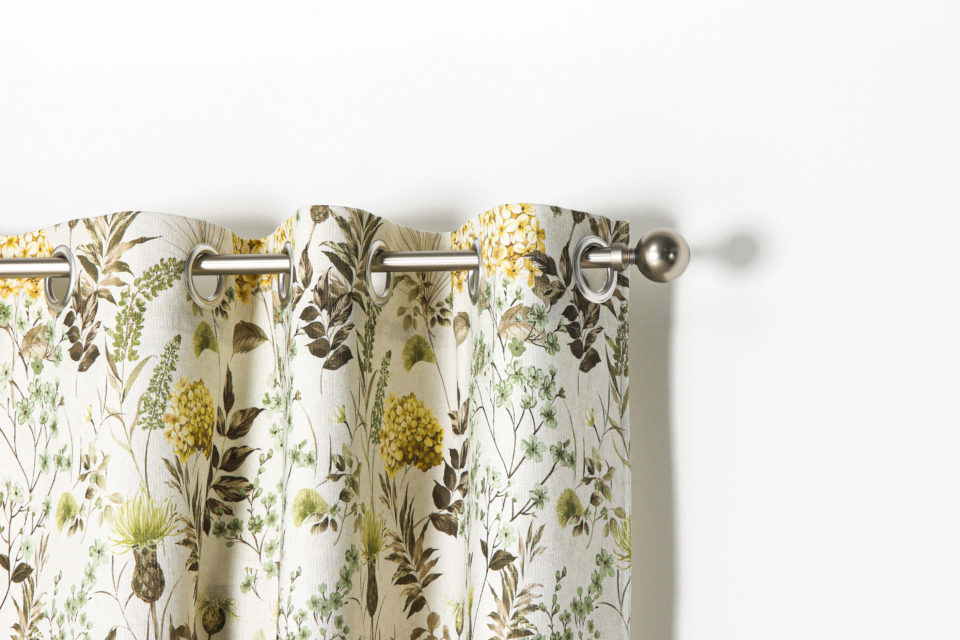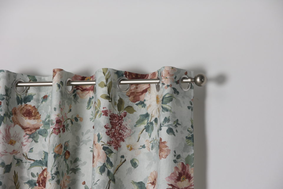 Cortina confeccionada Merlene, Jacquard estampado floral, composición 70% poliéster 30% algodón, con ollaos. Certificado Oeko-Tex®.