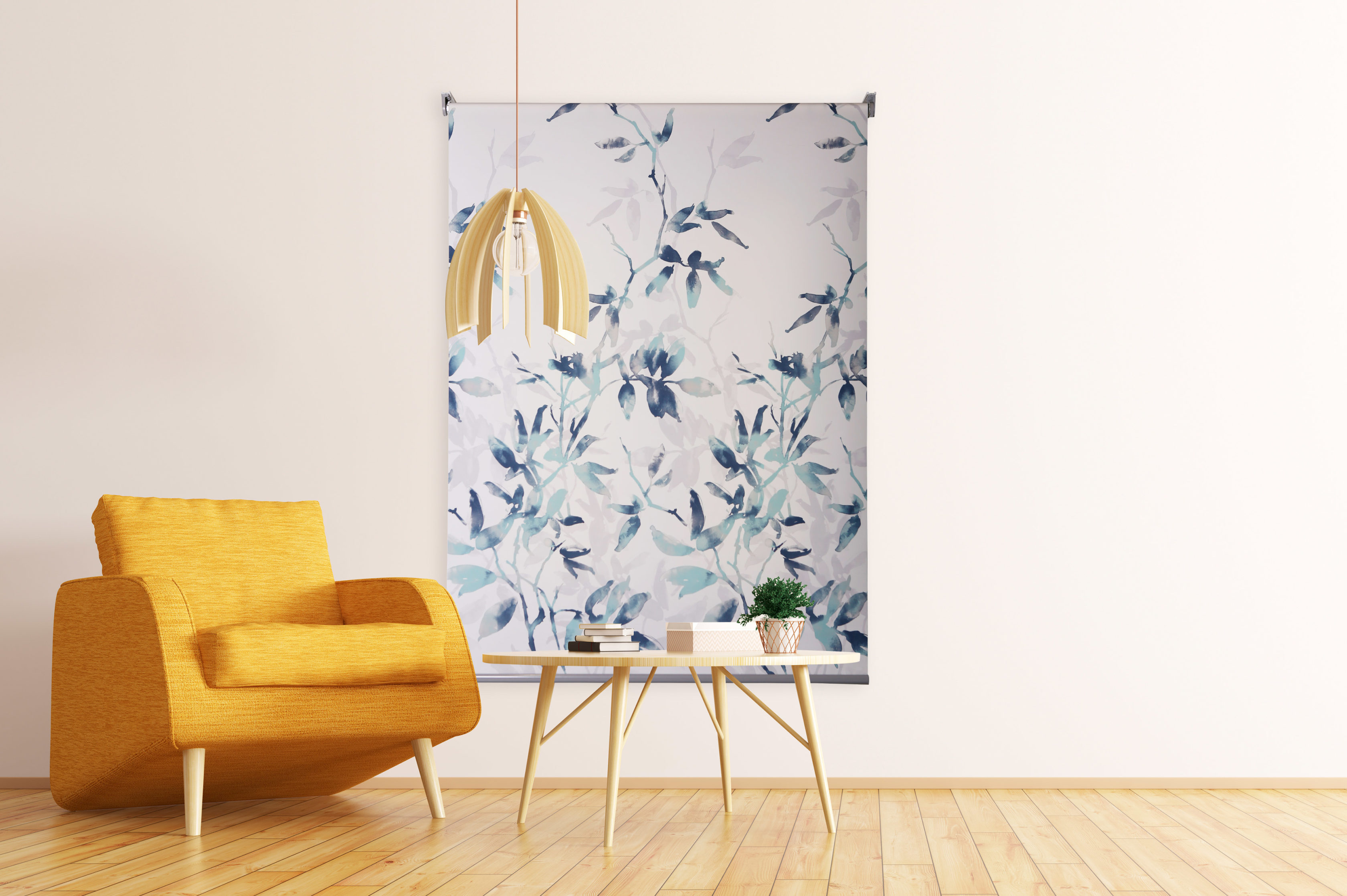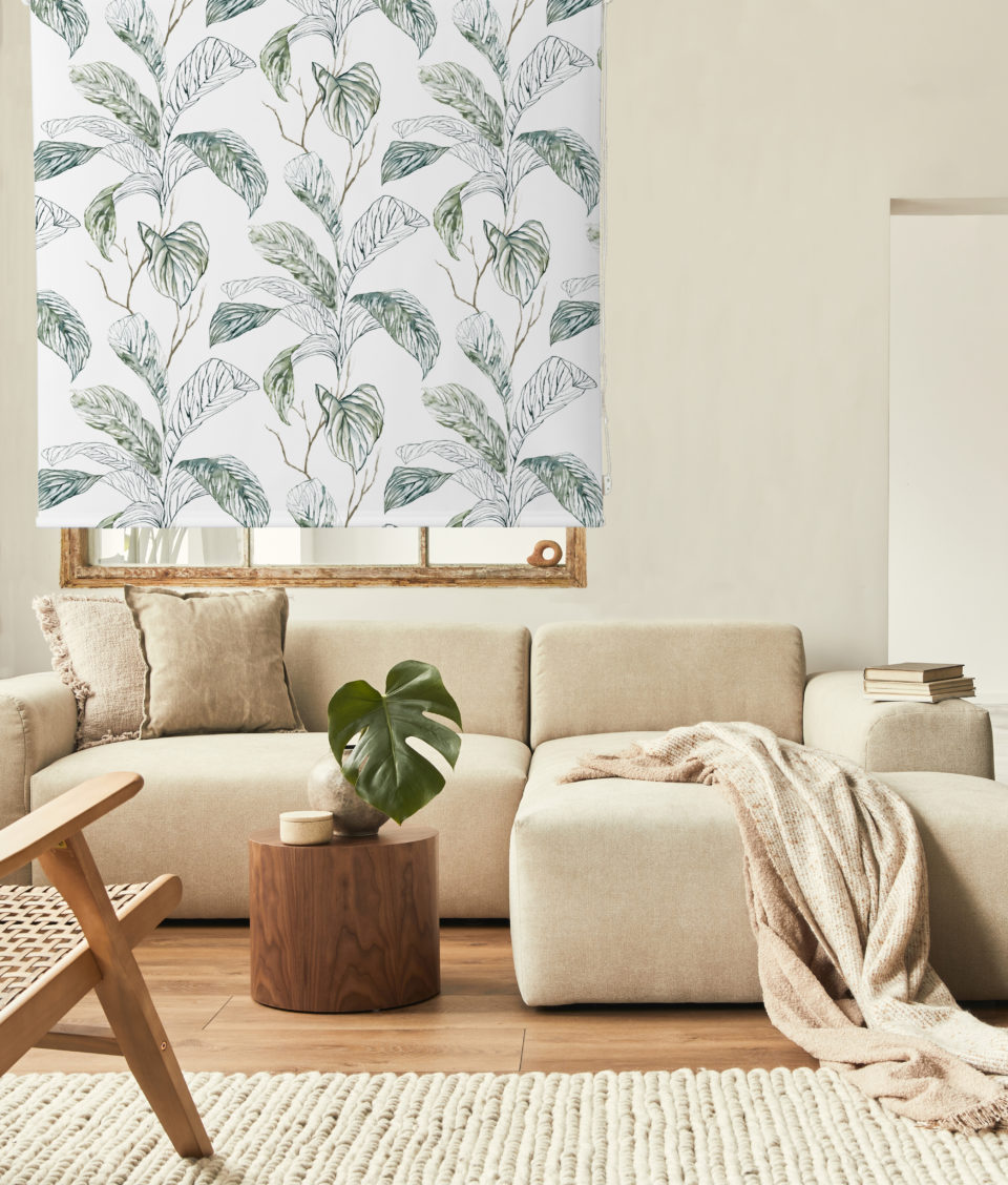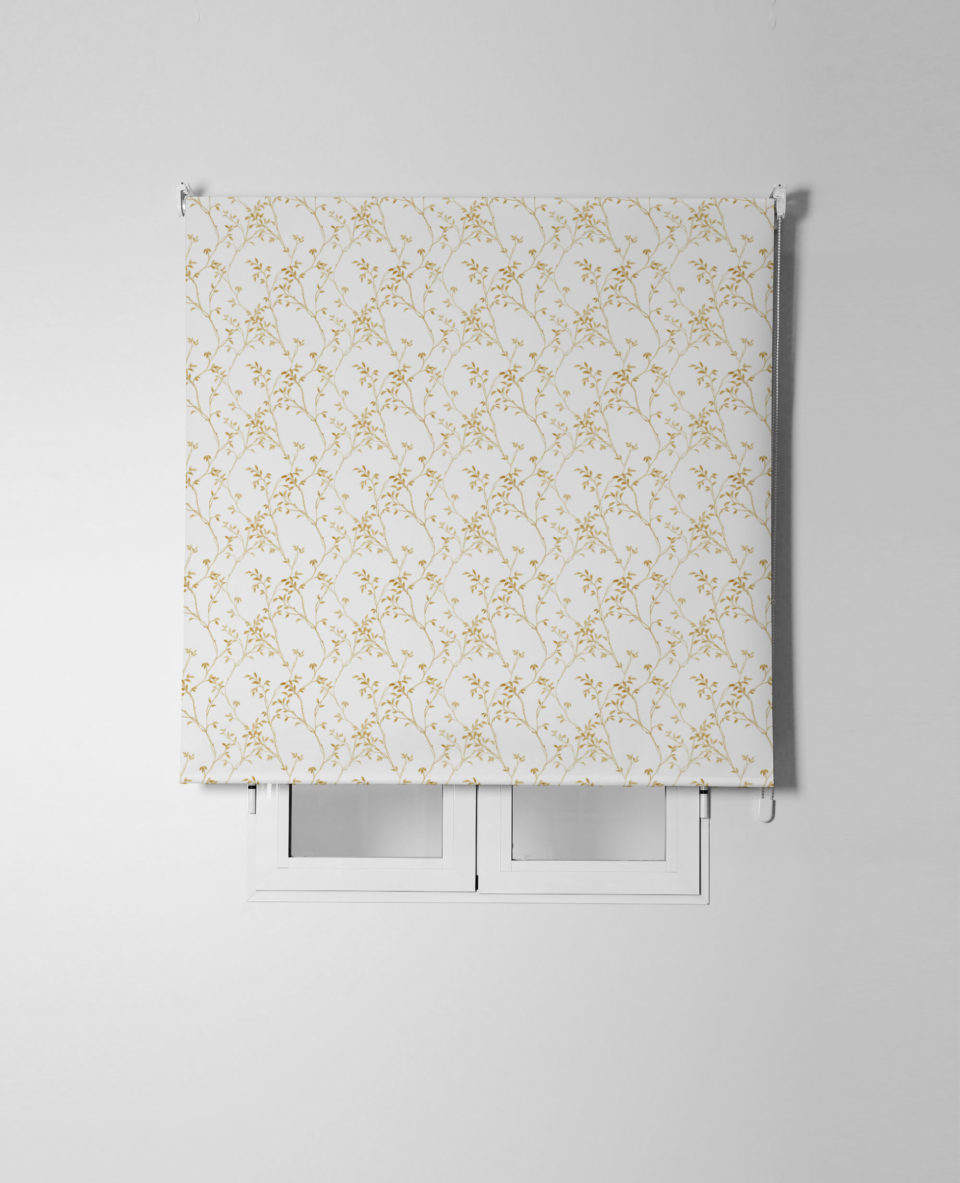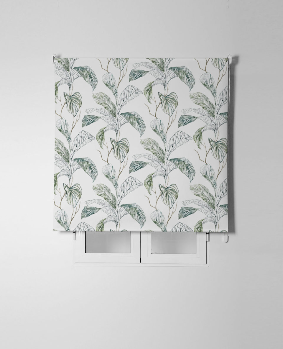 Estor enrollable SELVA, estampado floral sobre satén resinado. Composición 65% poliéster y 35% algodón, semitranslúcido y fácil de limpiar. Incluye mecanismo de seguridad infantil y es de fácil instalación.
