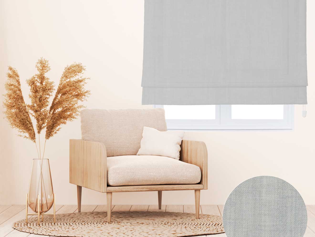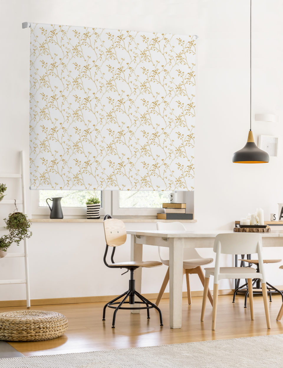 Estor paqueto Yute, con un tejido semi translúcido de poliéster con aspecto a yute, ofrece intimidad y estilo rústico a tus ventanas, con fácil instalación y mantenimiento.