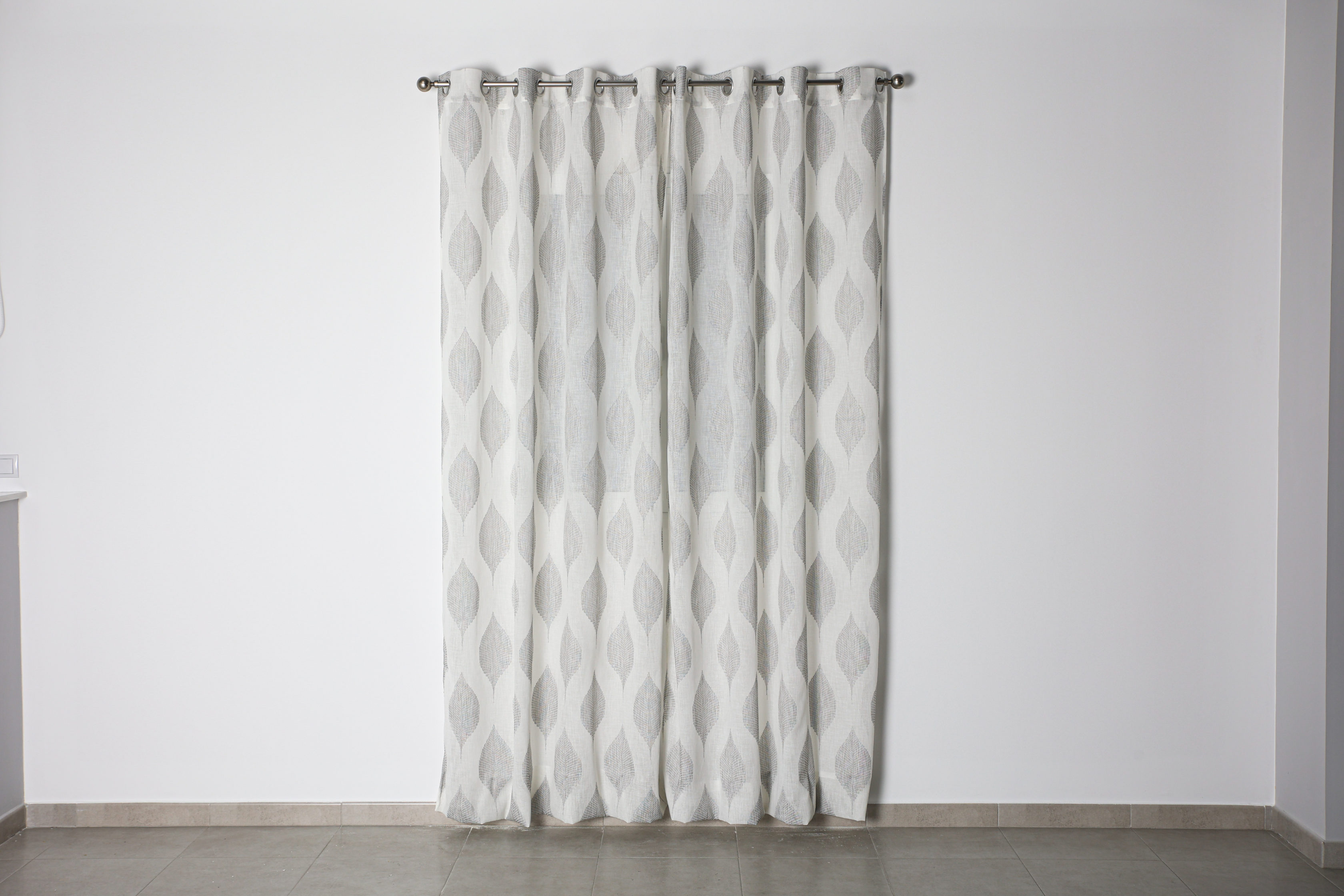 La cortina de hogar AMAIA Gris es una opción moderna y versátil para tu hogar. Confeccionada con visillo Jacquard de poliéster, presenta motivos florales en Jacquard de color blanco sobre un fondo gris suave.
