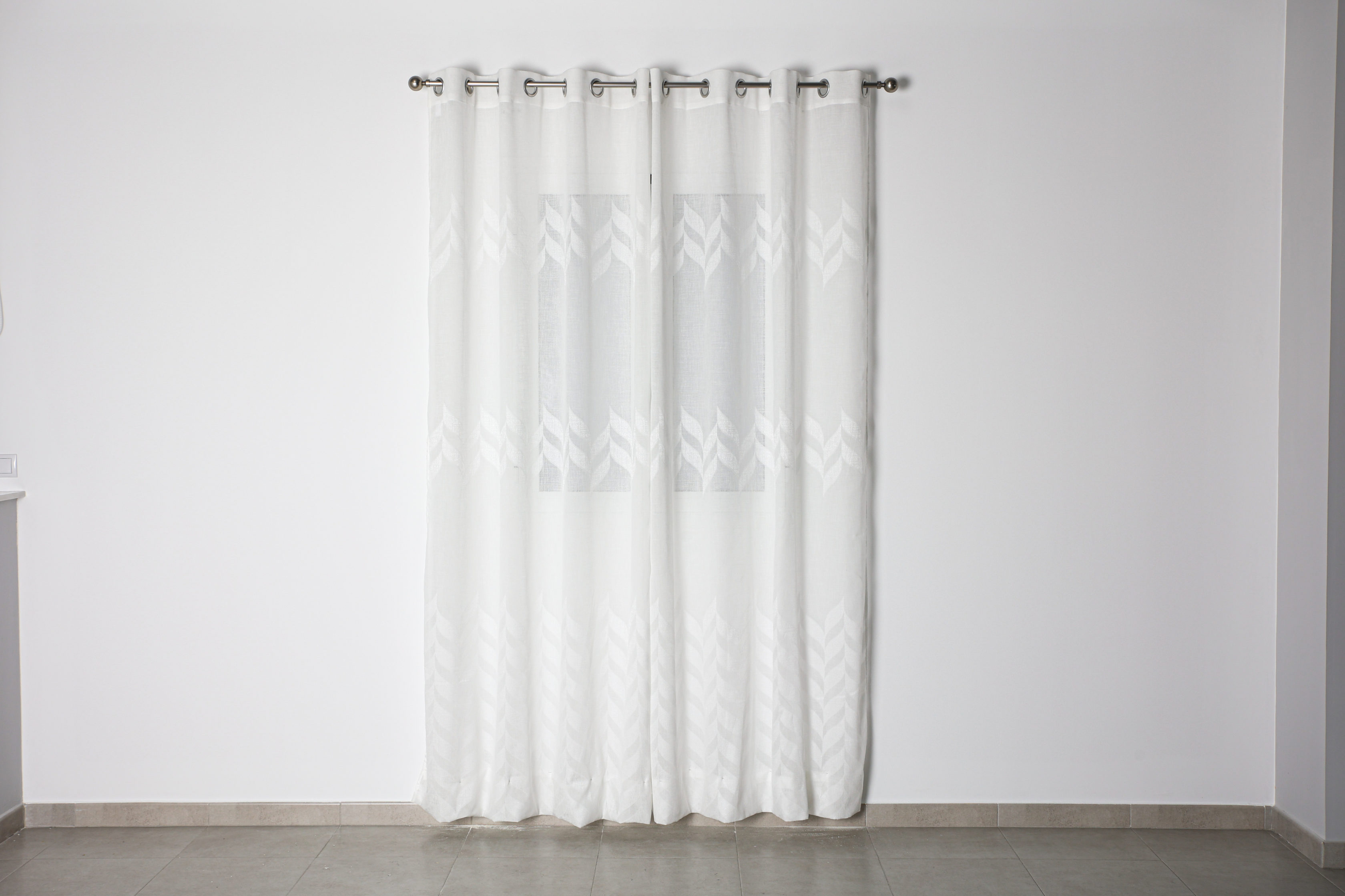 El diseño floral en Jacquard de color blanco agrega un toque de sofisticación y estilo a la decoración de tu hogar, mientras que la cinta fruncidora en la parte superior facilita su instalación en una variedad de barras, garantizando un acabado perfectamente ajustado y elegante.